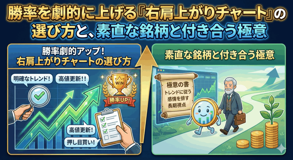 【株式投資の鉄則】勝率を劇的に上げる「右肩上がりチャート」の選び方と、素直な銘柄と付き合う極意